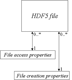 Each file can have its own file access property list. This allows the creative use of other lowlevel file drivers. For instance, the metadata file can be held in RAM and accessed via the Memory driver while the raw data file is stored on disk and accessed via the POSIX driver. Metadata file access will be governed by the file access property list in meta_properties. Raw data file access will be governed by the file access property list in raw_properties.