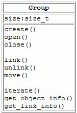 The primary operations on a group are to add and remove members and to discover member objects. These abstract operations, as listed in the figure below, are implemented in the Groups (H5G) APIs. For more information,