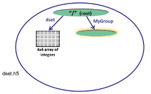 The code below opens the dataset dset.h5 with read/write permission and creates a group MyGroup in the root group. Properties are not specified so the defaults are used: