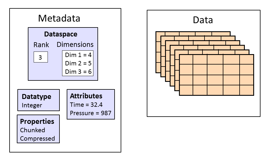 HDF5 datasets organize and contain the “raw” data values. A dataset consists of metadata that describes the data, in addition to the data itself: