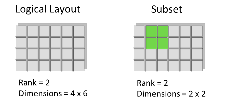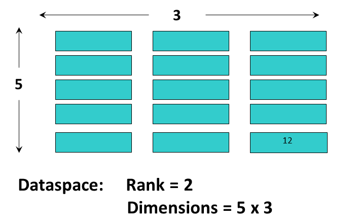 A dataspace describes the layout of a dataset's data elements. It can consist of no elements (NULL), a single element (scalar), or a simple array.