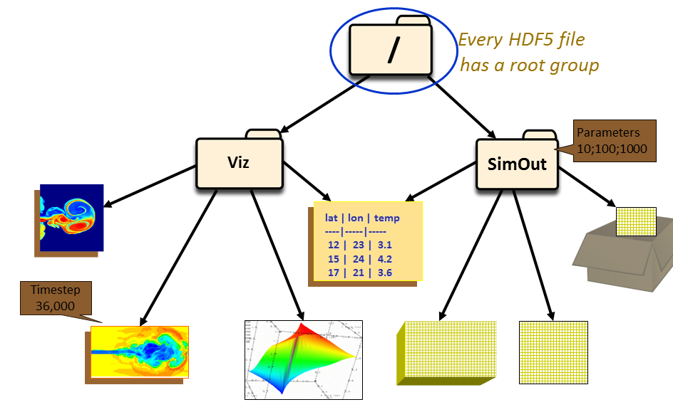 HDF5 groups (and links) organize data objects. Every HDF5 file contains a root group that can contain other groups or be linked to objects in other files.