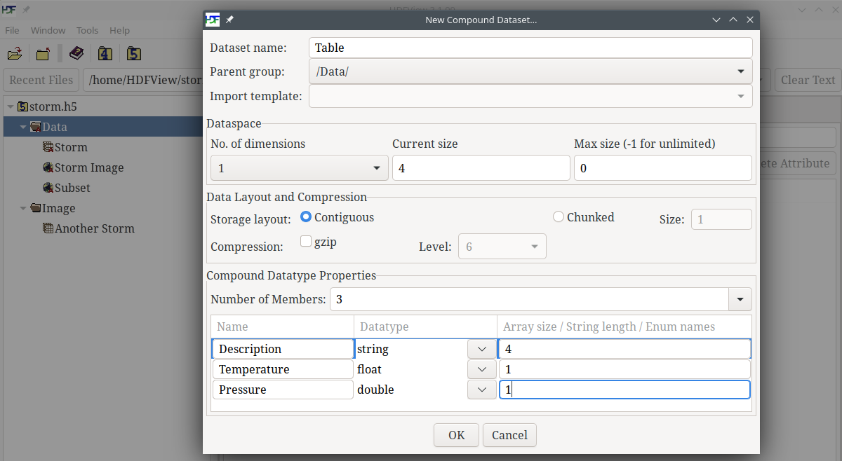 Creating a Table (Compound Dataset)