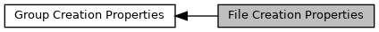 Use file creation properties to control aspects of file creation such as setting a file space management strategy or creating a user block. Unlike file access properties, creation properties are stored with the file, and cannot be changed once a file has been created.